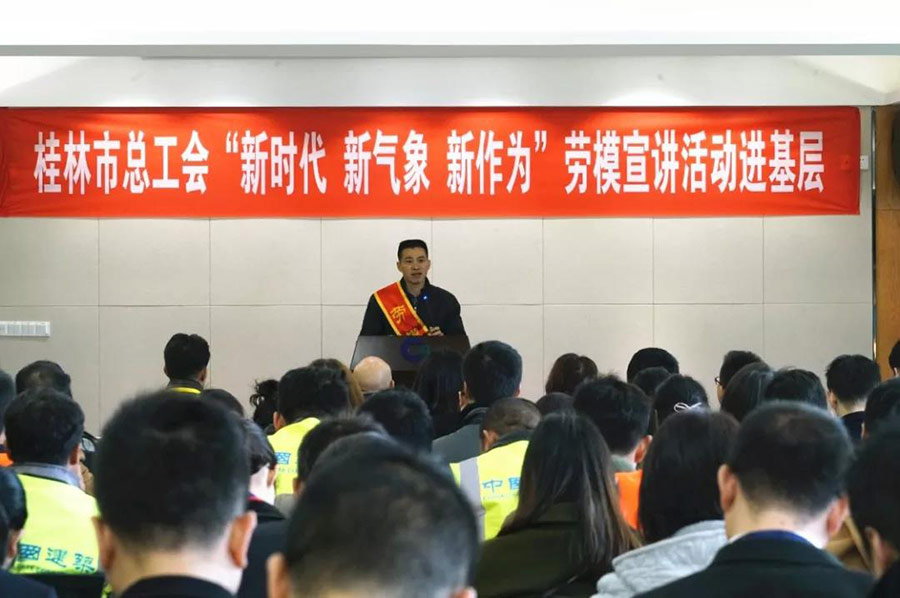 “全國勞動模范”、“北京奧運會火炬手”、“廣西五一勞動獎?wù)隆?、“廣西十大金牌工人”、“廣西勞動模范”陳君龍同志給大家講述了他作為中國石油天然氣第六建設(shè)公司的一名工人,參加了撫順石化、大慶乙烯、西氣東輸?shù)软椖拷ㄔO(shè),在平凡的崗位上干出來不平凡業(yè)績的感人故事。市總工會勞動保護部副部長葛雷聆聽了勞模的先進事跡,希望工會要協(xié)同各個方面為勞動模范、大國工匠發(fā)揮作用搭建平臺、提供舞臺,培養(yǎng)造就更多勞動模范、大國工匠。中建八局二公司職工代表表示要在項目建設(shè)工作中以勞模為榜樣,立足崗位,發(fā)揚艱苦奮斗的精神,為臨桂新區(qū)的發(fā)展貢獻自己的力量。
