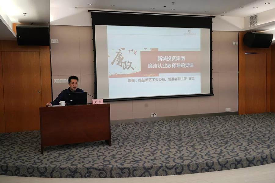 為了增強(qiáng)國(guó)企工作人員廉潔從業(yè)意識(shí),筑牢拒腐防變的思想防線,1月30日下午,臨桂新區(qū)工委委員、管委會(huì)副主任文杰在新城投資集團(tuán)辦公樓1001會(huì)議室上了一堂題為《廉潔從業(yè)教育》專題黨課,為集團(tuán)公司全體黨員干部職工在年關(guān)到來(lái)之際,把好廉潔“節(jié)點(diǎn)關(guān)”,以案例警示教育作廉潔提醒。集團(tuán)公司領(lǐng)導(dǎo)班子、全體黨員、預(yù)備黨員、主管及以上人員、子公司負(fù)責(zé)人、發(fā)展對(duì)象、入黨積極分子參加了本次黨課學(xué)習(xí)。