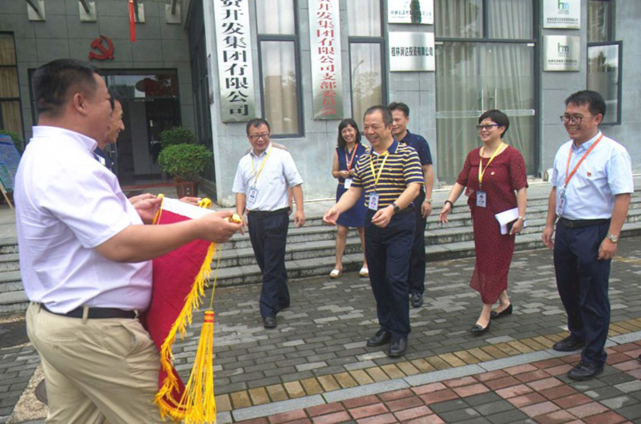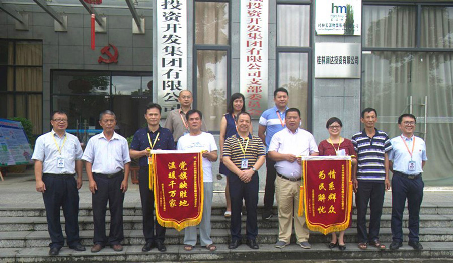 所謂綠水青山就是金山銀山,為村民們積極籌集資金清理和修復(fù)河堤,不僅保護了村里的青山綠水,同時也保護了村民的人身安全及財產(chǎn)安全。新城投資集團黨支部在臨桂新區(qū)工委和臨桂區(qū)直屬機關(guān)工委的具體指導(dǎo)下,積極踐行黨的十九大精神,用實際行動為群眾解決難題,辦實事,辦好事,得到了下頭陂村村民的一致認(rèn)可和稱贊。村委經(jīng)過集體商量,一致決定給新城投資集團黨支部送上“黨旗映勝地,溫暖千萬家”的錦旗;給工會送上“情系群眾,為民解憂”的錦旗,表達(dá)了村民們對新城投資集團給予的支持和幫助致以誠摯的謝意。