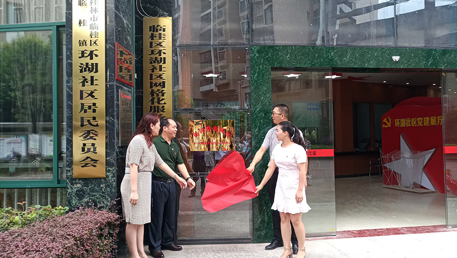臨桂新區(qū)工委委員、管委會(huì)副主任覃正東,臨桂新區(qū)工委組織人事部部長梁利,臨桂區(qū)委正科級組織員、區(qū)委組織部部務(wù)會(huì)成員彭勝發(fā),環(huán)湖社區(qū)黨支部書記李伊倩共同為“便民服務(wù)驛站”揭牌,新城投資集團(tuán)黨支部副書記鄧仁友,臨桂區(qū)社會(huì)事務(wù)管理中心常務(wù)副主任朱志桂以及環(huán)湖社區(qū)黨支部委員等領(lǐng)導(dǎo)出席了活動(dòng)的啟動(dòng)儀式。