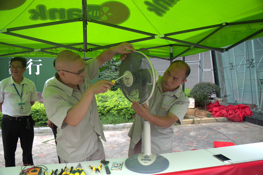 活動(dòng)現(xiàn)場,一邊是小家電維修,一邊是生活常識咨詢服務(wù)?!斑@些東西不是很貴卻很容易壞,拿去修又不劃算,本打算扔了,沒想到還能修好,真是太好了?!本用裢醢⒁讨笨洹,F(xiàn)場居民紛紛把損壞的家電拿了出來。燒水壺、電吹風(fēng)、取暖器、電風(fēng)扇等,在黨員志愿者的巧手下,一件件家電“重獲新生”?,F(xiàn)場黨員們還向大家講解家電使用和保養(yǎng)方法,解答居民在日常生活使用家電過程中遇到各種問題?!霸诩议T口就能享受到免費(fèi)的服務(wù),真是太方便了,希望這樣的活動(dòng)能經(jīng)常舉辦!”一旁的張阿姨還意猶未盡。