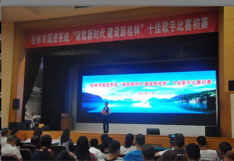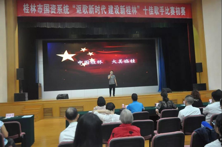 圖為“謳歌新時代、建設(shè)新桂林”十佳歌手比賽初賽現(xiàn)場