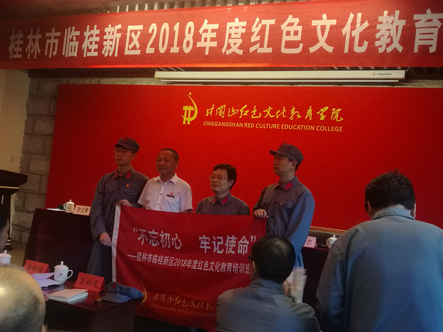 為認真貫徹落實《干部教育培訓(xùn)工作條例》,抓好黨員干部隊伍建設(shè),培養(yǎng)和造就一支高素質(zhì)的黨員干部隊伍,進一步強化臨桂新區(qū)黨員干部黨性思想、紅色文化思想教育,在中國共產(chǎn)黨成立97周年前夕,臨桂新區(qū)工委組織新區(qū)黨員干部、新城投資集團黨員干部,于5月26日前往井岡山紅色文化教育學(xué)院,開展為期5天的以“不忘初心,牢記使命”為主題的紅色文化教育培訓(xùn)。參加第一期教育培訓(xùn)的學(xué)員共計46人。臨桂新區(qū)工委副書記唐標(biāo)明、工委委員李星明、 工委委員蔣玖明、工委委員莫秋元、新區(qū)管委黨總支副書記李鋒、新城投資集團黨支部副書記鄧仁友均以普通黨員身份參加第一期紅色文化教育培訓(xùn)。