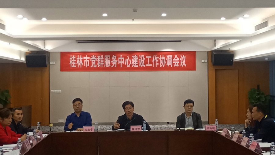 2019年5月9日,市委組織部常務(wù)副部長、市黨群服務(wù)中心建設(shè)工作領(lǐng)導(dǎo)小組副組長蔡澤軍在新城投資集團(tuán)1001會議室主持召開桂林市黨群服務(wù)中心建設(shè)協(xié)調(diào)會議。臨桂新區(qū)工委副書記、管委會副主任、市黨群服務(wù)中心建設(shè)工作領(lǐng)導(dǎo)小組副組長唐標(biāo)明出席會議。