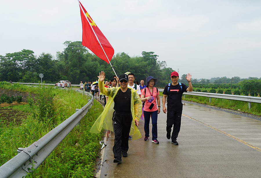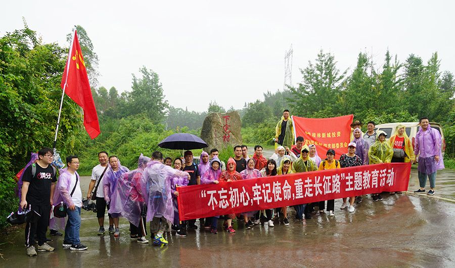 在中國共產(chǎn)黨建黨98周年之際,為進一步提升支部黨員的黨性修養(yǎng),緬懷革命先輩,牢記革命歷史,繼承和弘揚偉大的長征精神,6月27日,新城投資集團黨支部全體黨員組織了“不忘初心,牢記使命,重走長征路”主題黨日活動,來到全州縣紹水鎮(zhèn)沿著紅軍當(dāng)年的足跡,追憶紅軍的光輝歲月,學(xué)習(xí)紅軍精神,開展重走長征路活動。臨桂新區(qū)工委委員、管委會副主任文杰,市紀(jì)委駐臨桂新區(qū)紀(jì)檢組副組長唐良平,新城投資集團黨支部書記、總經(jīng)理周道林以普通黨員身份參加活動。