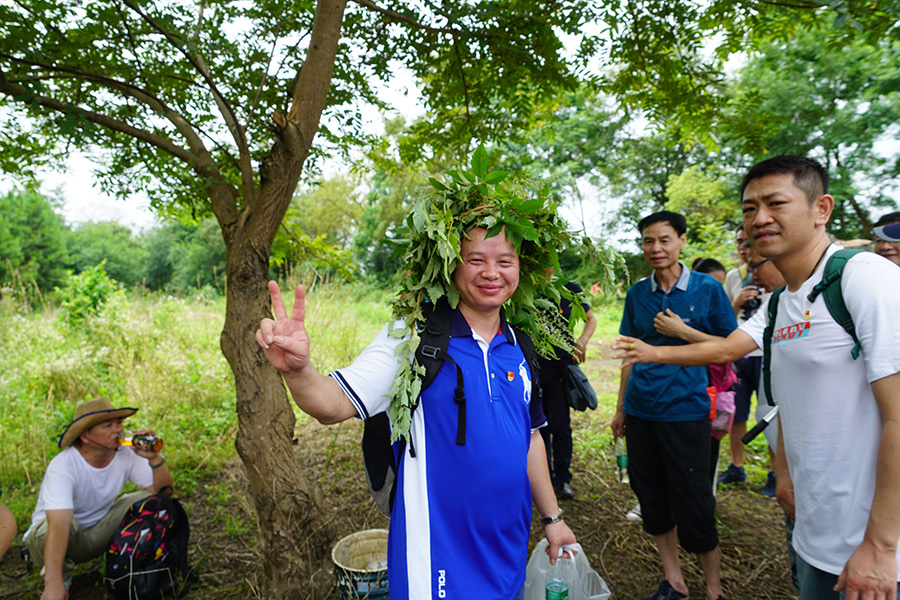 烈日炎炎,隊伍沿著溪流行進,來到一片荊棘林,按導(dǎo)航的方向,前方已經(jīng)沒有了路,同志們紛紛拾起樹枝,開辟著道路緩慢前行,經(jīng)歷了一個多小時的摸索,隊伍終于找到了正確的方向。中午16點,同志們途經(jīng)王家、棕樹園,抵達了麻市。