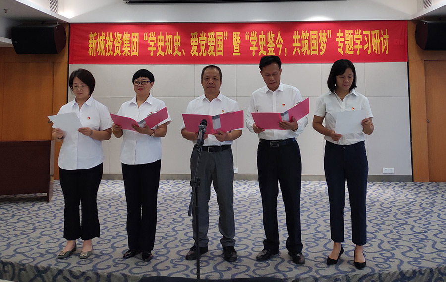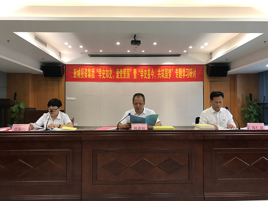10月14日,新城投資集團黨總支籌備工作領(lǐng)導小組召開“學史知史、愛黨愛國”暨“學史鑒今,共筑國夢”專題學習會,認真學習貫徹習近平總書記關(guān)于學習黨史、新中國史的重要論述,在學習領(lǐng)悟黨史、新中國史中不斷深化對“不忘初心、牢記使命”的認識和理解,增強守初心、擔使命的思想自覺和行動自覺。會議由集團黨總支籌備工作領(lǐng)導小組副組長、副總經(jīng)理鄧仁友主持,集團黨總支籌備工作領(lǐng)導小組組長、主題教育領(lǐng)導小組組長、董事長周道林出席會議并作重點講話,集團黨總支籌備工作領(lǐng)導小組成員、副總經(jīng)理張新悅出席會議。