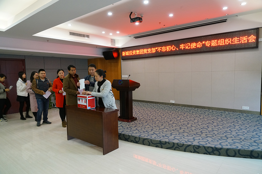 12月10日,新城投資集團(tuán)黨支部召開“不忘初心、牢記使命”專題組織生活會(huì)和民主評議黨員。集團(tuán)公司黨支部書記、董事長周道林主持會(huì)議,集團(tuán)公司全體黨員參加會(huì)議。