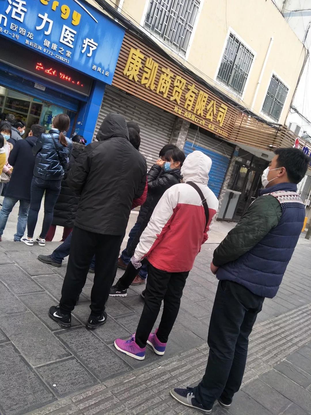 ▲冷冷的天氣,唐忠祥同志在各藥店和醫(yī)療器械機構(gòu)門口排隊采購物資。