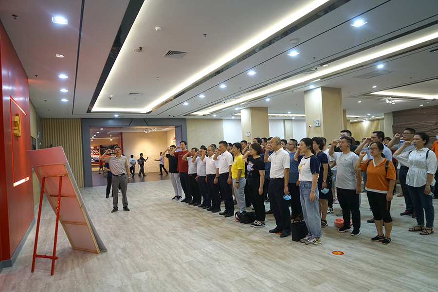 在紀念館,黨員們仔細觀看館內(nèi)所陳列的各種珍貴文物、文獻、照片等資料,伴隨著講解員動情的解說,大家懷著敬仰的心情默默聆聽,重溫紅色記憶,追尋革命足跡。在趙新明的領(lǐng)誓下,全體黨員重溫入黨誓詞。