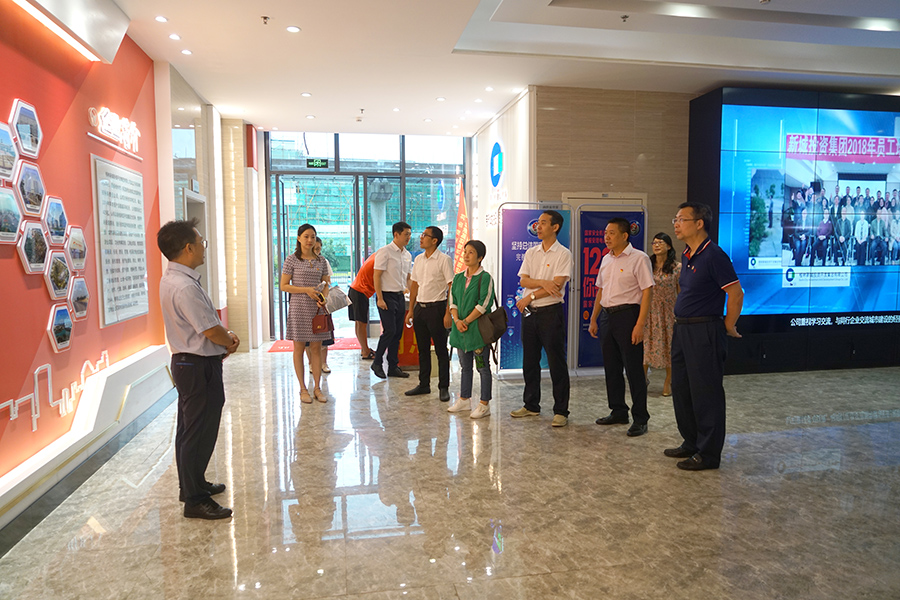 市國資委黨委委員、副主任藍(lán)譽(yù)國,市國資委黨建工作科科長莫素娥,新城投資集團(tuán)黨總支委員薛春秀陪同參觀。