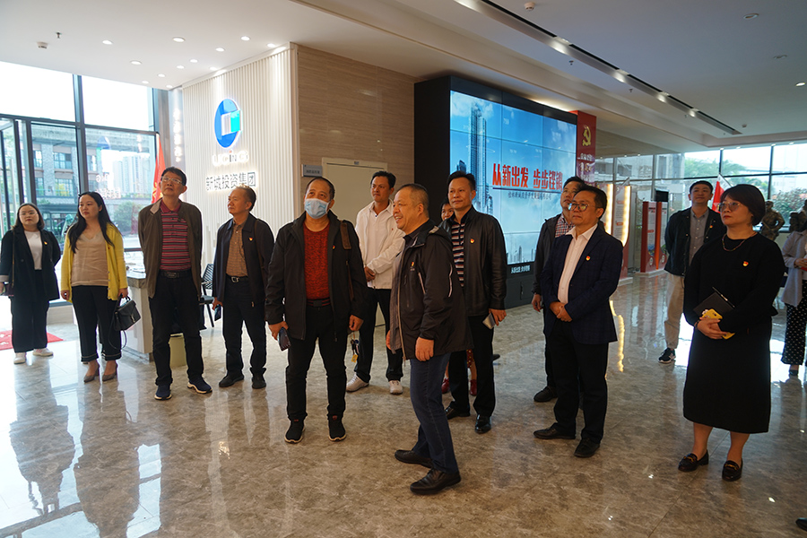 2020年10月16日,中共南寧市住房城鄉(xiāng)建設(shè)行業(yè)委員會(huì)黨委書(shū)記、南寧市建筑業(yè)聯(lián)合會(huì)會(huì)長(zhǎng)李宗澤 ,南寧市建筑業(yè)聯(lián)合會(huì)顧問(wèn)馮仕文,南寧市建筑業(yè)聯(lián)合會(huì)秘書(shū)長(zhǎng)黃繼先,南寧市建筑業(yè)聯(lián)合會(huì)副秘書(shū)長(zhǎng)賴彥君,廣西啟盛建設(shè)集團(tuán)有限公司總經(jīng)理、南寧市建筑業(yè)聯(lián)合會(huì)理事鄧國(guó)璋等一行組成考察學(xué)習(xí)組,在新城投資集團(tuán)黨總支書(shū)記、董事長(zhǎng)、總經(jīng)理周道林的陪同下參觀了集團(tuán)黨建展示區(qū),雙方就國(guó)企黨建如何促進(jìn)項(xiàng)目建設(shè)發(fā)展等內(nèi)容進(jìn)行交流。