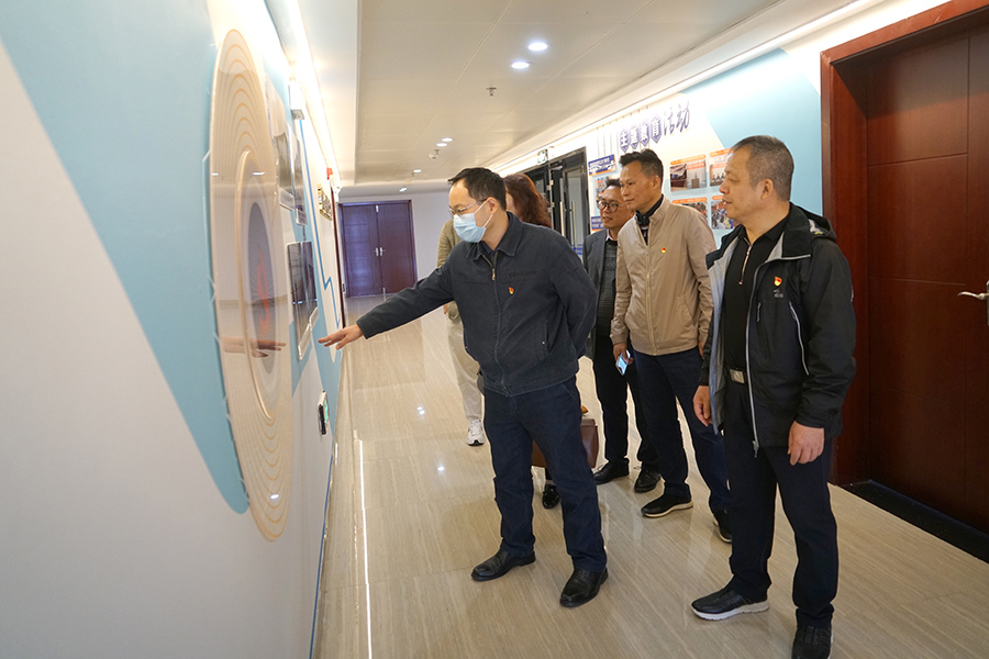 蔣玖明一行觀看集團公司黨建宣傳展示,認為集團公司國企黨建品牌創(chuàng)建工作載體豐富,內容扎實,為臨桂新區(qū)黨建品牌創(chuàng)建工作打下良好的基礎。