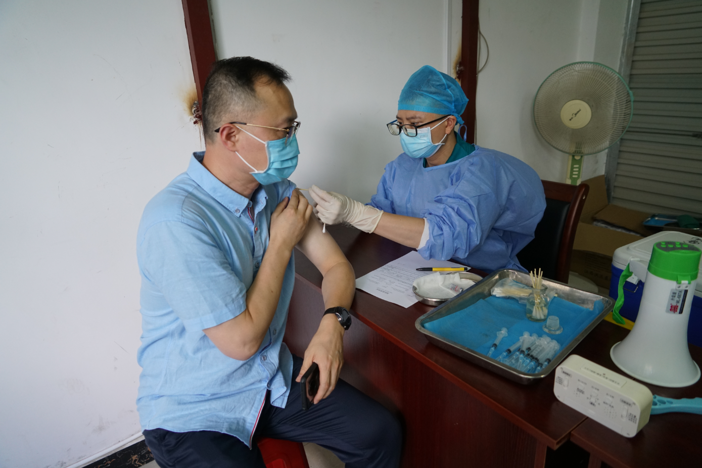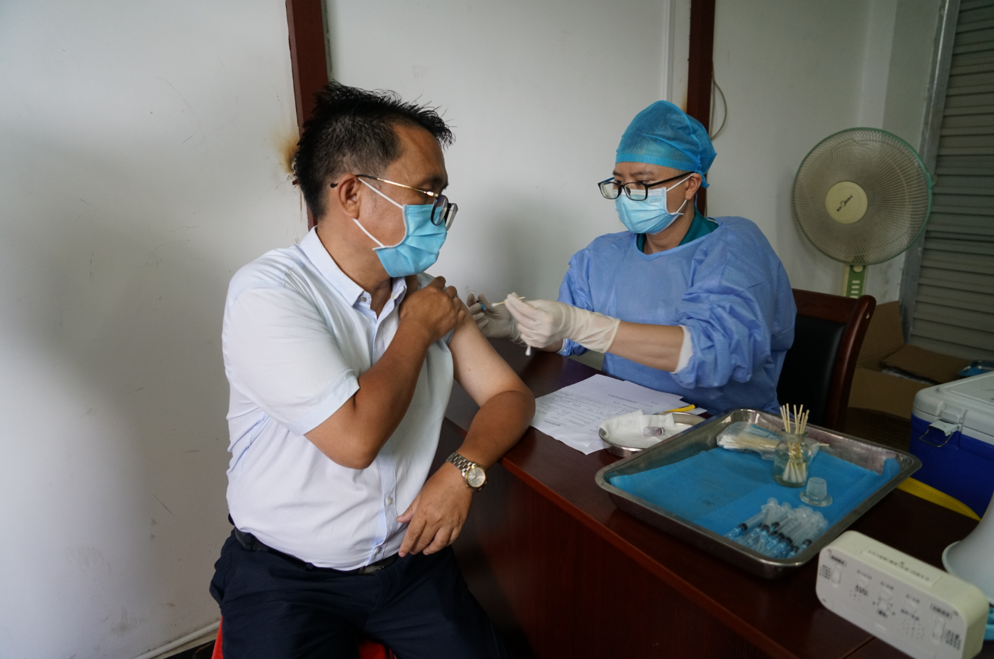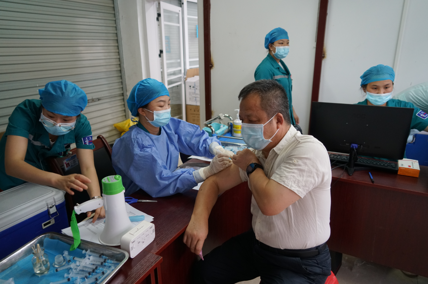 第二針接種流程與第一針相同,現(xiàn)場分為登記區(qū)、錄入?yún)^(qū)、接種區(qū)、留觀區(qū)和緊急處置區(qū)。集團(tuán)黨總支書記周道林,副總經(jīng)理吳濤,工會(huì)主席譚力源等到現(xiàn)場了解接種現(xiàn)場安排情況并帶頭接種新冠疫苗第二針。