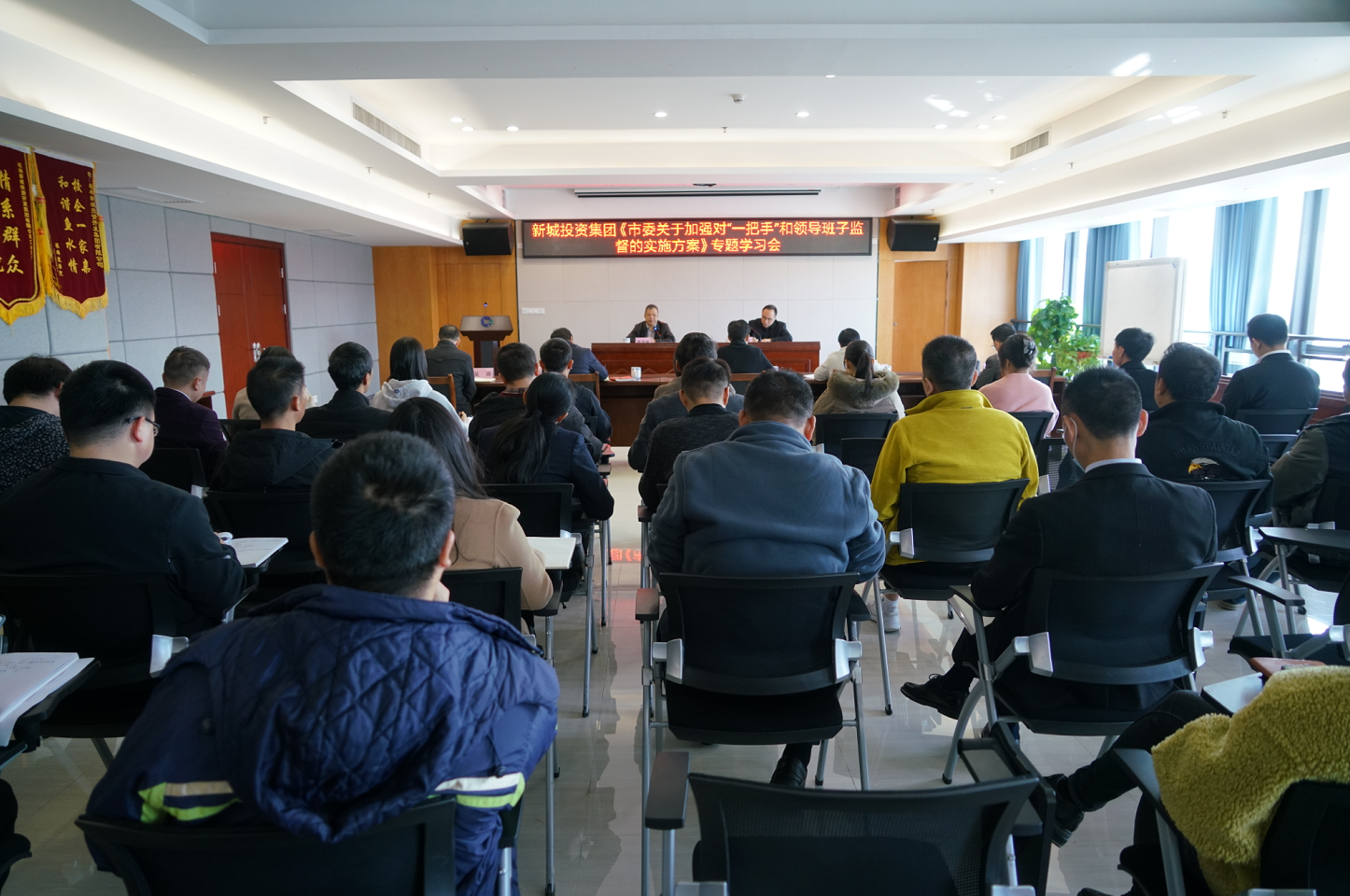 集團(tuán)領(lǐng)導(dǎo)班子成員,各部室、子公司負(fù)責(zé)人,中層副職以上干部,第一、第二黨支部委員參加會(huì)議。