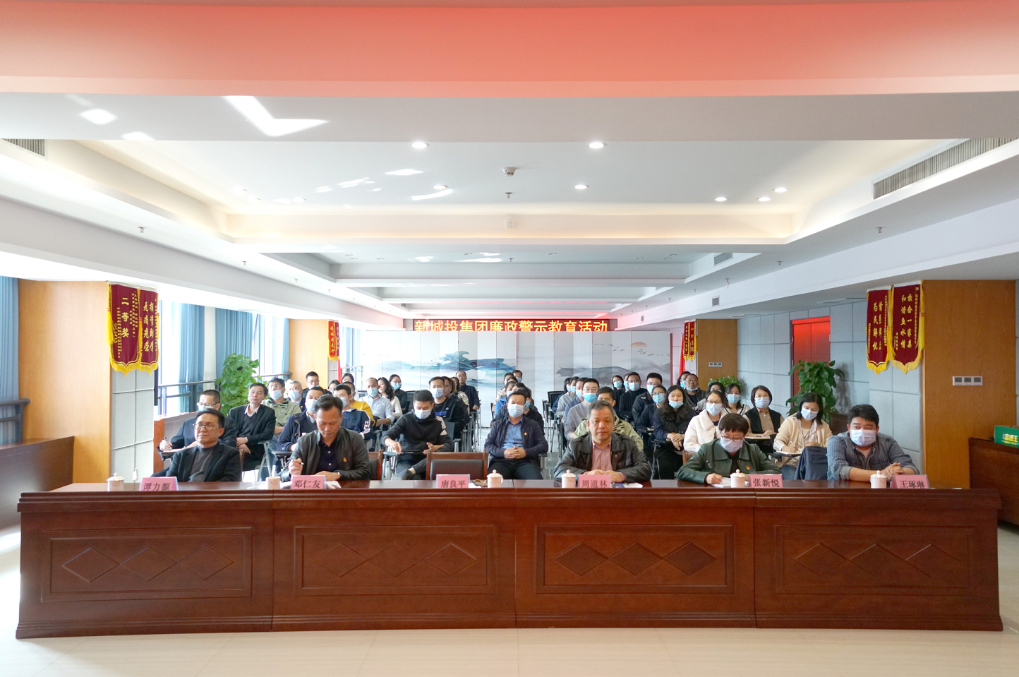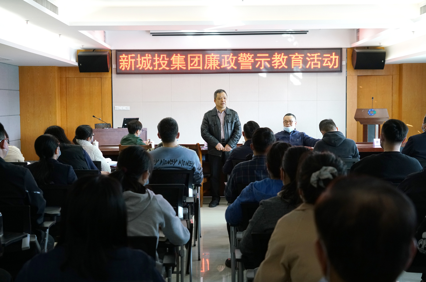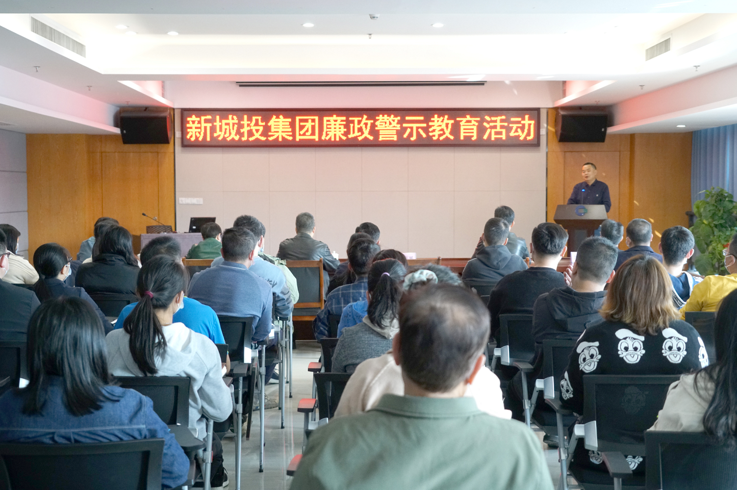 新城投集團領導班子成員、中層副職及以上干部(含子公司班子),財務部、法務經營部、成本管理部全體人員觀看了廉政警示教育片。