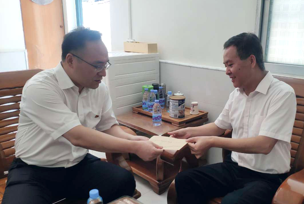 在困難黨員、“三等功臣之家”廖文德家中,黃峻與廖文德拉起家常,詳細詢問生活起居、身體狀況、醫(yī)療保障和子女的工作情況。廖文德是新城投集團下屬子公司宏謀物業(yè)公司橡膠廠項目經(jīng)理,2021年確診肺癌,每月定期到醫(yī)院檢查開藥,開銷很大,加上近期的暴雨導致家中內(nèi)澇,家電等物品損壞嚴重,兒子兒媳都是軍人,常年駐守外地。得知集團黨總支副書記前來慰問,廖文德眼中閃爍著眼淚。黃峻鼓勵廖文德好好養(yǎng)病、好好工作,保持樂觀的生活態(tài)度,有困難找黨組織、找工會。
