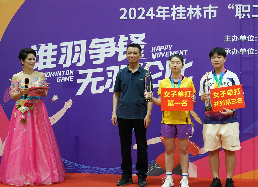 4月27日下午,由市總工會(huì)主辦的“中國(guó)夢(mèng) 勞動(dòng)美 凝心鑄魂跟黨走 團(tuán)結(jié)奮進(jìn)新征程”桂林市“職工杯”羽毛球比賽圓滿結(jié)束并舉行了頒獎(jiǎng)儀式。新城投集團(tuán)羽毛球隊(duì)經(jīng)過(guò)激烈角逐,在36支參賽隊(duì)伍中摘得多項(xiàng)榮譽(yù):由公司黨委副書(shū)記(主持工作)、副董事長(zhǎng)、總經(jīng)理朱毅擔(dān)任領(lǐng)隊(duì),吳萍明、龔志祥、楊衛(wèi)來(lái)、張欣婭、唐蒙組成的新城投集團(tuán)“黨旗映勝地”羽毛球隊(duì)榮獲團(tuán)體第三名;張欣婭榮獲女子單打第一名;楊衛(wèi)來(lái)榮獲男子單打第五名的優(yōu)異成績(jī)。