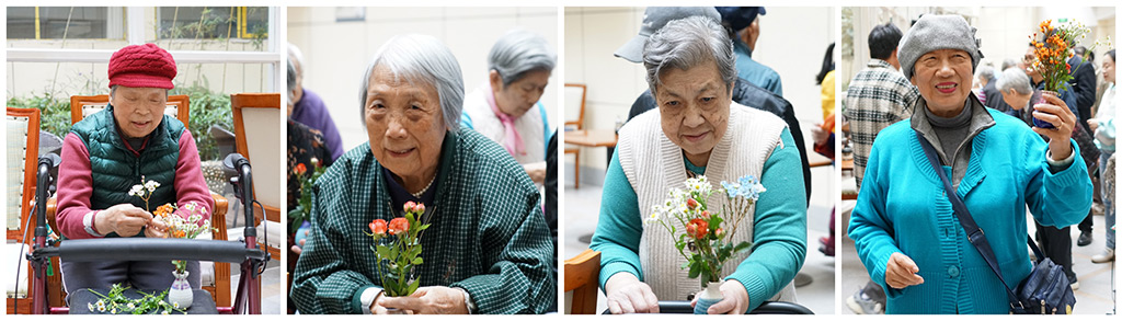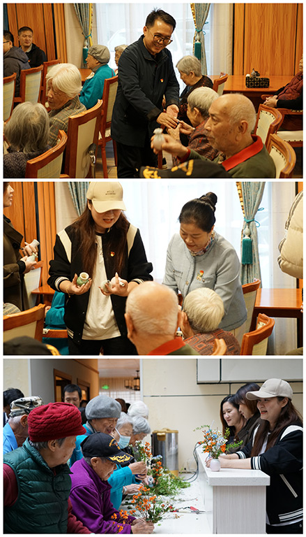 黨課結(jié)束后,老人們?cè)邳h員志愿者的陪伴下開展插花活動(dòng)。志愿者們將一個(gè)個(gè)小巧精致的花瓶親手送到每一位老人的手中。在一片歡聲笑語中,大家一邊享受插花樂趣,一邊分享彼此心得體會(huì),攜手創(chuàng)作出一件件精美的插花作品??粗约河H手制作的作品,老人們臉上流露出深深的成就感和自豪感。
