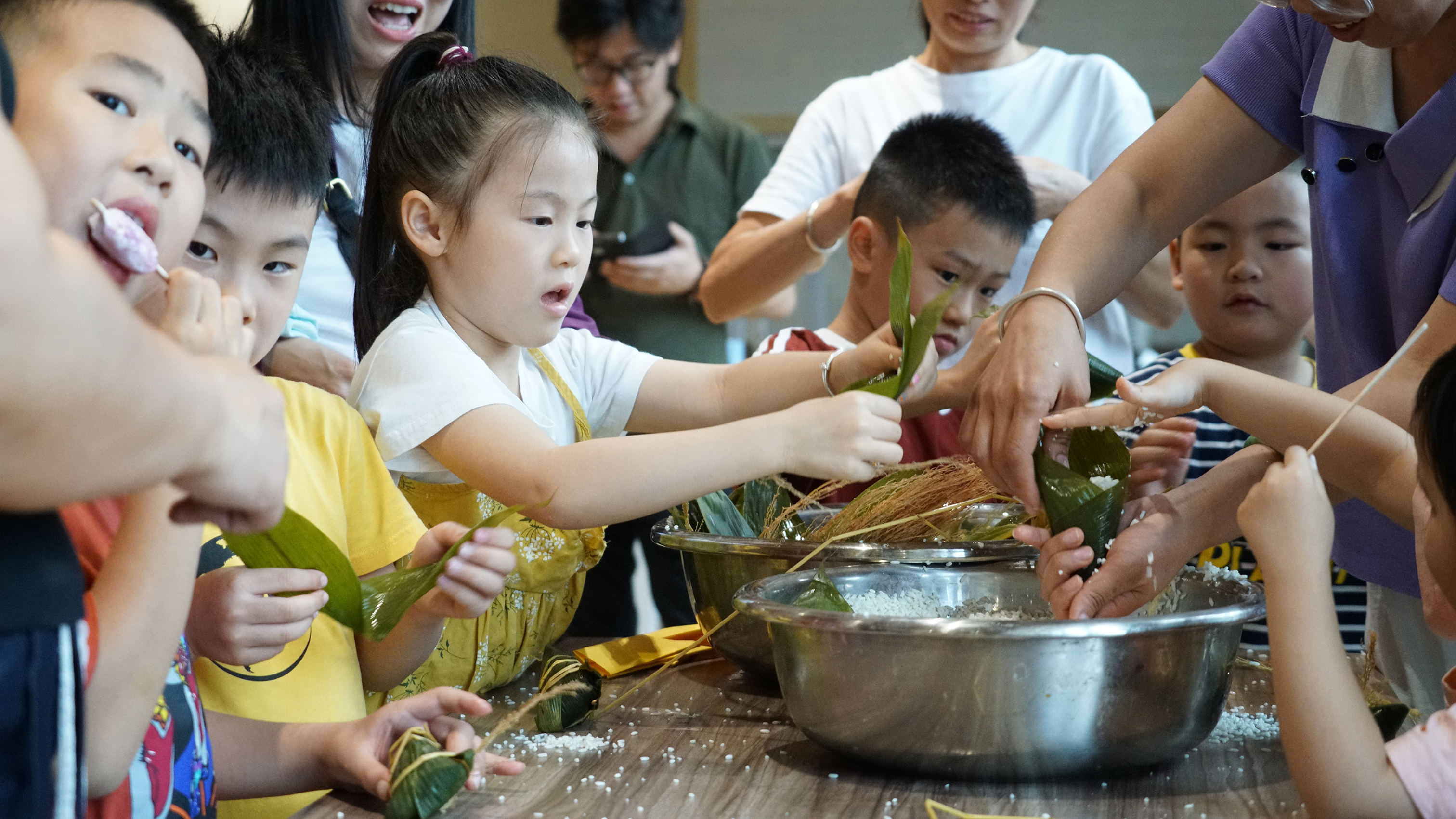 “家企同行·國風(fēng)非遺——民族文創(chuàng),與‘粽’不‘童’”趣味游戲挑戰(zhàn)環(huán)節(jié),將活動氛圍推向高潮。童年紙飛機(jī)、端午射五毒、趣味投壺三大趣味游戲讓職工與孩子都沉浸其中。在童年紙飛機(jī)游戲中,為了能讓紙飛機(jī)飛得更遠(yuǎn)、更久,大家興致勃勃地嘗試著各種折法,隨后用力一擲,紙飛機(jī)在空中劃出一道道優(yōu)美的弧線,有的飛得又高又遠(yuǎn),有的則在空中翻轉(zhuǎn)幾圈后穩(wěn)穩(wěn)落地,看著自己折的紙飛機(jī)歡呼雀躍,仿佛回到了無憂無慮的童年時光。端午射五毒游戲則充滿了傳統(tǒng)韻味,大家手持飛鏢,瞄準(zhǔn)靶心,每當(dāng)有人射中五毒圖案,周圍就會響起一陣歡呼聲,大家在歡聲笑語中感受著端午節(jié)的傳統(tǒng)習(xí)俗。趣味投壺游戲更是熱鬧非凡,參與者們瞄準(zhǔn)壺口,或站或蹲,調(diào)整著姿勢和力度,隨著一次次投中,現(xiàn)場的氣氛也一次次被點燃,歡呼聲、加油聲此起彼伏。歡聲笑語回蕩在整個活動現(xiàn)場。各組成員在比賽中相互配合、相互鼓勵,展現(xiàn)了團(tuán)隊合作的力量。最終,根據(jù)各組獲得的總分,評選出冠軍組,大家在歡樂中感受到了團(tuán)隊的溫暖與力量。