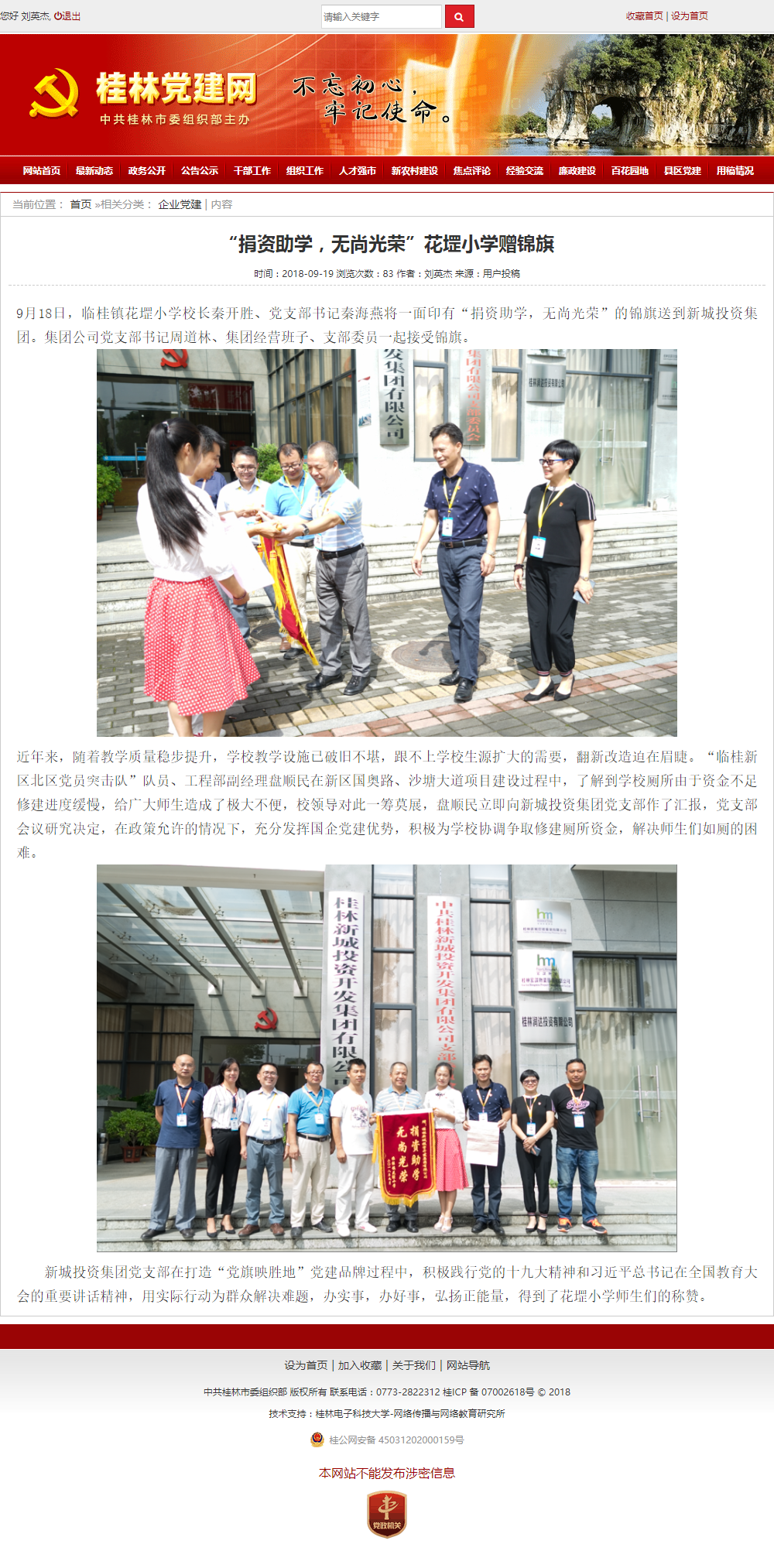桂林黨建網(wǎng) “捐資助學(xué),無(wú)尚光榮”花堽小學(xué)贈(zèng)錦旗