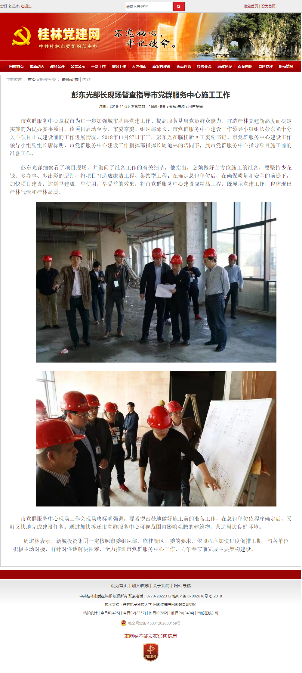 桂林黨建網(wǎng)-彭東光部長現(xiàn)場督查指導市黨群服務(wù)中心施工工作