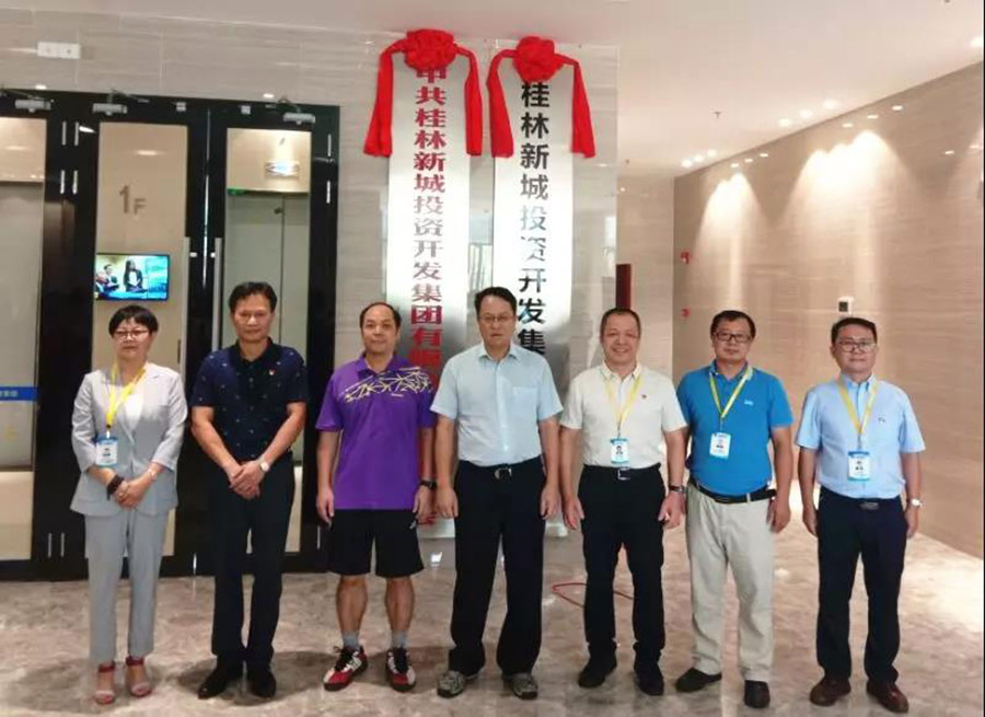 中共桂林市臨桂區(qū)委書記、中共桂林市臨桂新區(qū)工委第一副書記、桂林市臨桂新區(qū)管委會主任何新明,新區(qū)工委委員、管委會副主任覃正東,以及新城投資集團領導班子共同為“中國共產黨桂林新城投資開發(fā)集團有限公司支部委員會”、“桂林新城投資開發(fā)集團有限公司”揭牌。