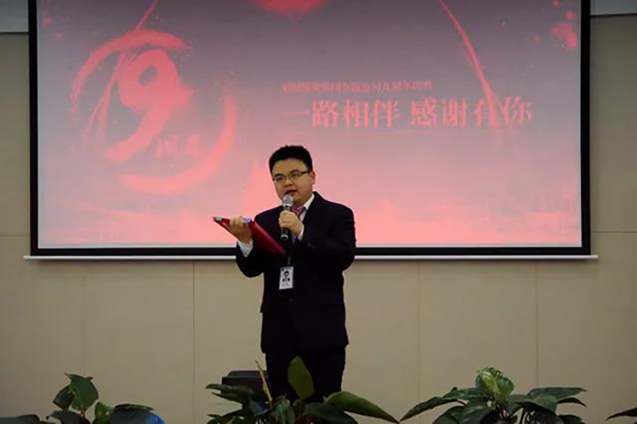在慶典活動(dòng)上,首先由集團(tuán)公司總裁周道林發(fā)表了慶祝集團(tuán)公司成立九周年致辭,回顧了新城投發(fā)展過程中的積累和沉淀,他以重要的“小故事”來說明成就新城投今天的方方面面,展現(xiàn)了我們新城投人艱苦奮斗、努力拼搏的精神;用一個(gè)個(gè)“小故事”來證明,新城投的今天是大家一直團(tuán)結(jié)協(xié)作、努力付出的成果;同時(shí),周總裁還對(duì)公司未來的發(fā)展進(jìn)行了展望,鼓舞大家齊心協(xié)力,扎實(shí)工作,為創(chuàng)造集團(tuán)公司輝煌燦爛的明天共同努力奮斗。