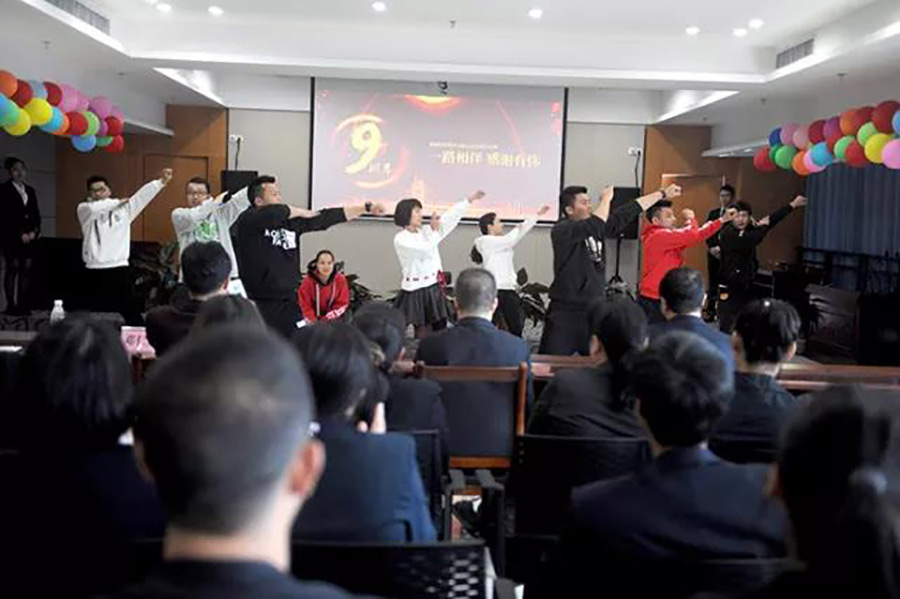 2018年3月26日,為慶祝桂林新城投資開發(fā)集團(tuán)有限公司成立九周年,新城投資集團(tuán)全體員工齊聚新城商務(wù)酒店辦公樓會(huì)議室,以高昂的情緒迎接集團(tuán)公司九周年慶典活動(dòng)。本次慶典活動(dòng)包括詩歌朗誦、“快閃”表演、集團(tuán)公司發(fā)展史知識(shí)問答競(jìng)賽等多個(gè)環(huán)節(jié)。