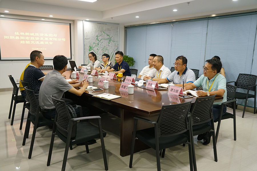 7月29日,陽朔縣陽宏投資發(fā)展有限公司總經(jīng)理朱毅率領導班子一行四人到新城投資集團,就融資、項目建設等進行交流學習,并到公司建設項目現(xiàn)場進行了參觀。桂林市臨桂新區(qū)管理委員會副主任文杰,新城投資集團董事長、總經(jīng)理周道林,副總經(jīng)理鄧仁友、鄭善華、張新悅,新城投資集團工會主席譚力源等參加座談。