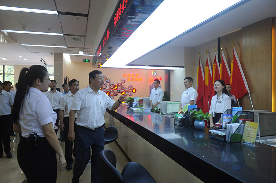趙樂(lè)秦、秦春成一行參觀黨群業(yè)務(wù)受理區(qū)