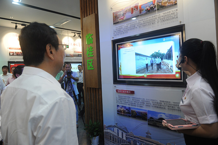 趙樂(lè)秦、秦春成一行參觀臨桂區(qū)展廳