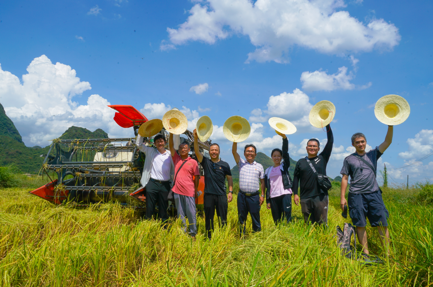 2021年9月5日上午,集團(tuán)公司黨總支書(shū)記、董事長(zhǎng)周道林現(xiàn)場(chǎng)察看了解桂林市臨桂區(qū)南邊山鎮(zhèn)桂花園旱改水項(xiàng)目首次水稻收割。