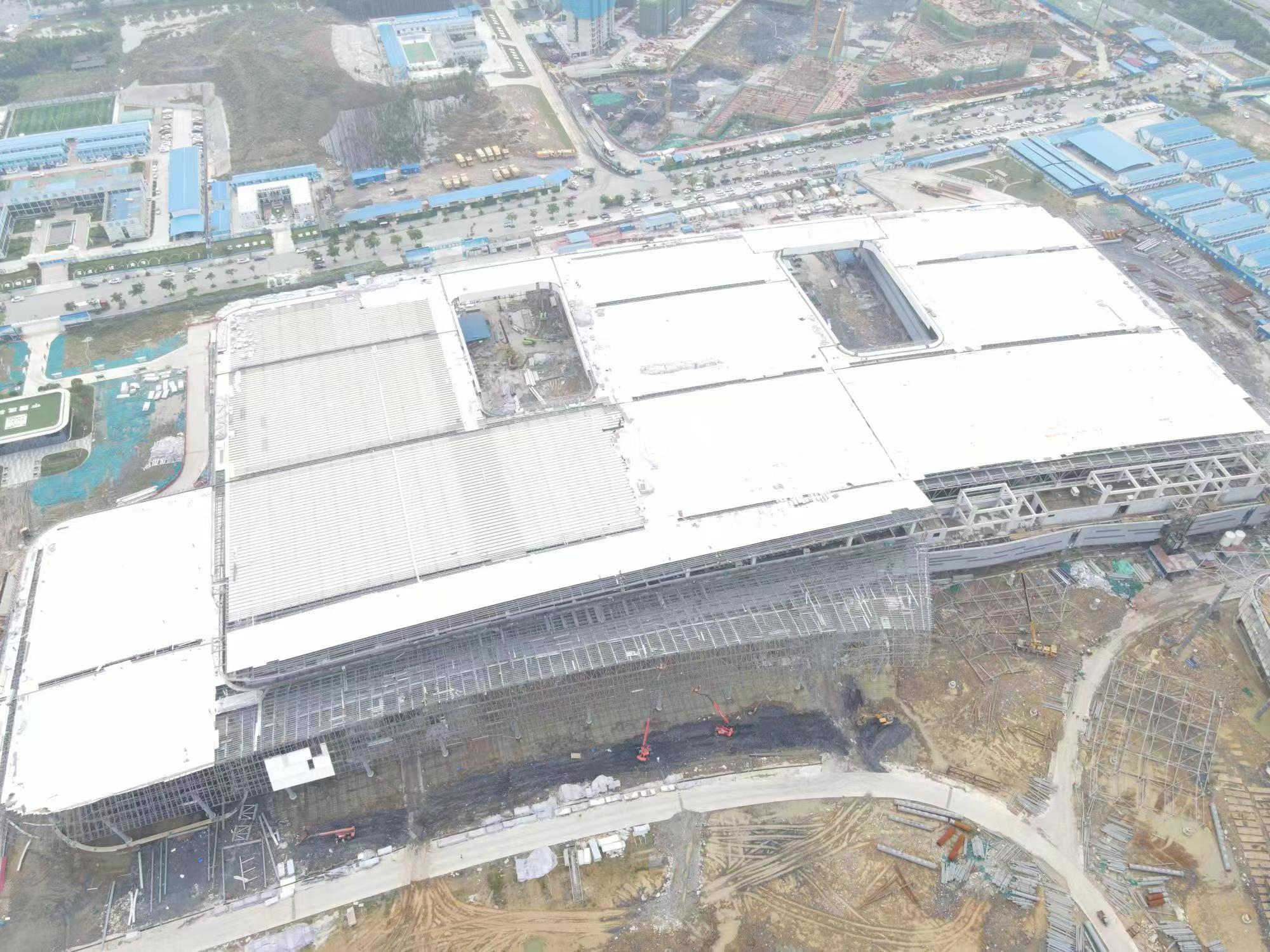新城投集團(tuán)在桂林新區(qū)“黨旗映勝地”黨建品牌的引領(lǐng)下,成立了項目臨時聯(lián)合黨支部,通過抓實“11321”黨建推項目工作法,實施“全過程一體鏈”黨建新模式,充分發(fā)揮各參建單位所長,以黨建推項目、項目促黨建,積極推進(jìn)黨建工作與生產(chǎn)經(jīng)營的深度融合,齊心協(xié)力推動會展項目建設(shè)?,F(xiàn)在,會展中心項目現(xiàn)場每天施工人數(shù)超1800人,各專業(yè)工作正在有序穿插進(jìn)行,在保證安全和工程質(zhì)量的前提下進(jìn)行施工,一季度月均產(chǎn)值過億。項目建設(shè)參建各方堅持安全第一、質(zhì)量至上,全程監(jiān)督每一道施工工序,嚴(yán)格把關(guān)每一個施工細(xì)節(jié), 各區(qū)域施工作業(yè)高效、有序展開,確保了疫情防控不缺位,項目施工整體不掉速。截至“5.1”前,項目標(biāo)準(zhǔn)展廳二次結(jié)構(gòu)完成80%,幕墻完成80%,金屬屋面避水工作正在展開;多功能廳主體完成100%;會議中心地下室完成90%,鋼柱吊裝完成80%;第一接待中心主樓完成至10樓,附樓地下室完成100%;游客中心地下室完成100%。