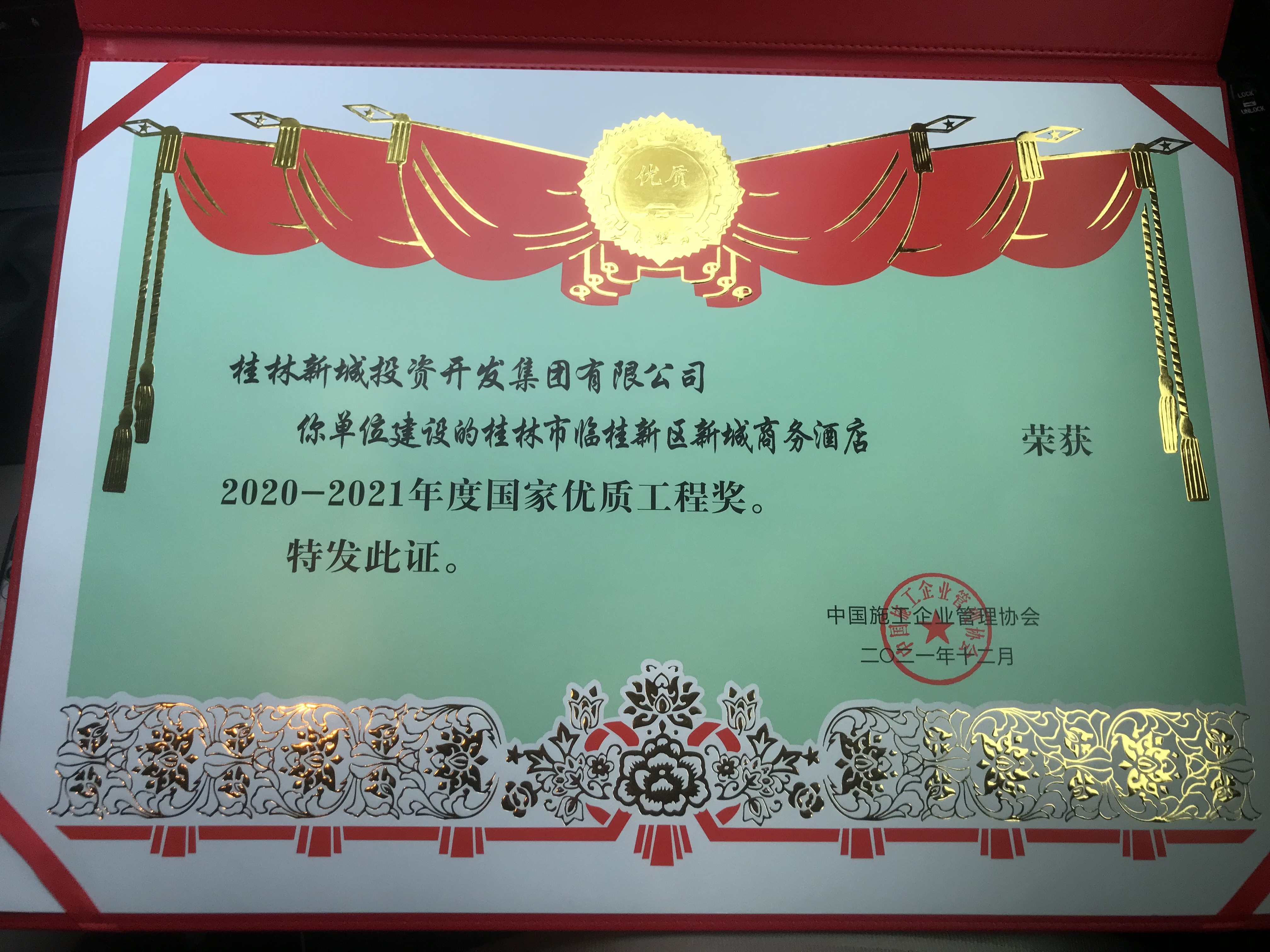 喜報(bào)!新城投集團(tuán)兩項(xiàng)工程榮獲2020-2021年度國家優(yōu)質(zhì)工程獎(jiǎng)