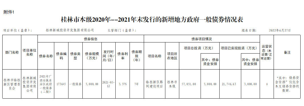 桂林新城投資開(kāi)發(fā)集團(tuán)有限公司關(guān)于2020年-2021年發(fā)行的新增政府債券使用和管理情況