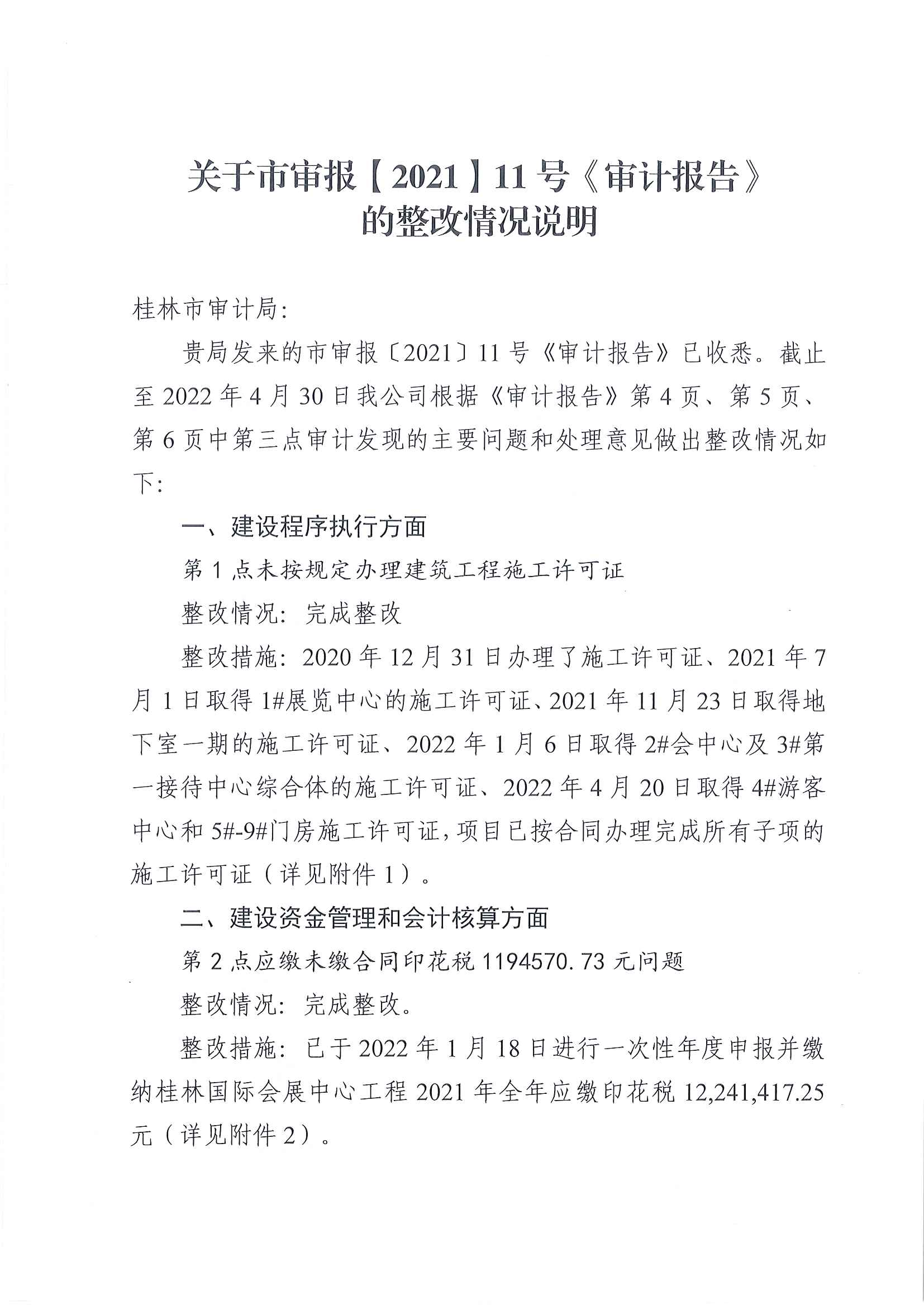 關(guān)于市審報(bào)【2021】11號(hào)《審計(jì)報(bào)告》的整改情況說(shuō)明