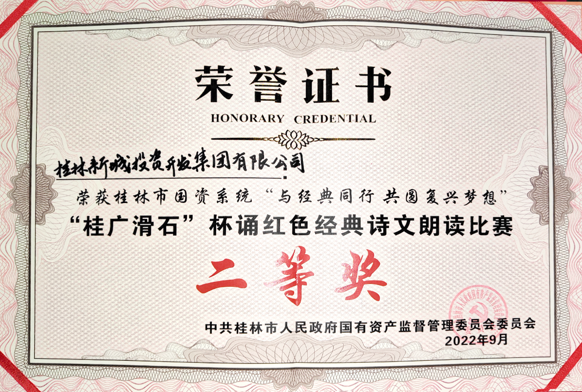 為彰顯傳統(tǒng)文化的獨(dú)特魅力,傳承千年優(yōu)良經(jīng)典文化與紅色基因,2022年9月23日,由桂林市人民政府國有資產(chǎn)監(jiān)督管理委員會主辦的“強(qiáng)國復(fù)興有我”主題教育——“與經(jīng)典同行,共圓復(fù)興夢想”誦紅色經(jīng)典詩文朗讀比賽(決賽)在一院兩館小劇場舉行。本次比賽評出一等獎2個,二等獎3個,三等獎4個。新城投集團(tuán)選送的詩朗誦情景劇《不朽的軍魂》憑借真摯的情感,轉(zhuǎn)折起伏的情節(jié),從19支決賽隊(duì)伍中脫穎而出,獲得二等獎的好成績。桂林市國資委黨委書記、主任裴軍等出席活動。
