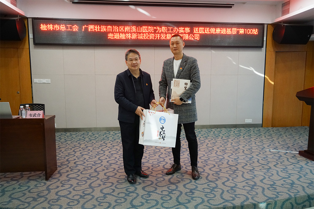 柳宏林對市總工會對活動的全力支持與指導,對新城投集團提供周全的保障服務工作表示衷心的感謝,并贈送醫(yī)院文化建設叢書、中醫(yī)養(yǎng)生禮盒。他指出,健康問題是重要的民生問題,也是工會組織關心職工的一項重要工作內容,希望今后雙方加強溝通交流,互促共進,共同發(fā)展。