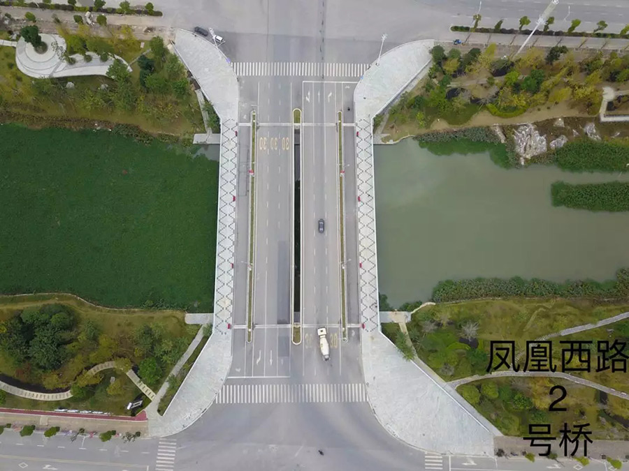 人民路二號橋位于臨桂新區(qū)人民路(萬福路-臨雁路段)上,是臨桂區(qū)通往秧塘工業(yè)園區(qū)的重要通道,橋梁結(jié)構(gòu)采用32米+32米+32米三跨等截面連續(xù)結(jié)構(gòu),跨越臨桂新區(qū)規(guī)劃水系,橋梁中心線與河道正交,橋梁長度為102.2米、寬度為40米,該工程于2017年5月開工建設(shè),于2018年6月21日完成初步驗(yàn)收。