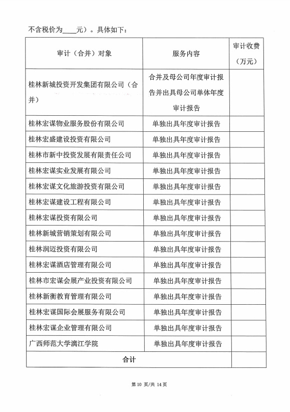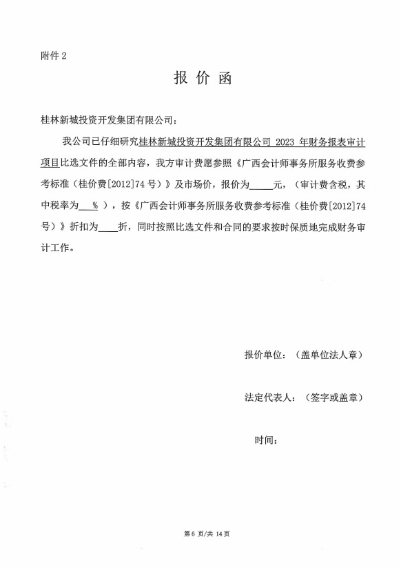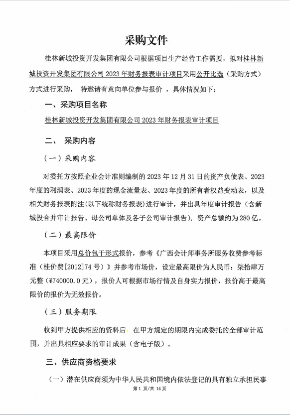 桂林新城投資開發(fā)集團有限公司2023年財務報表審計項目采購文件