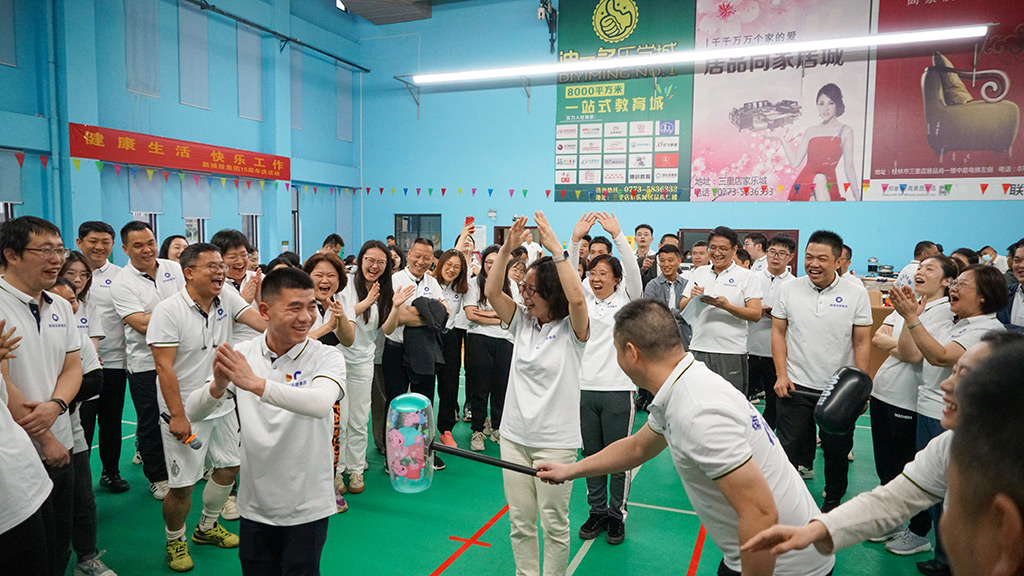 在目睹了兩場賽事的視覺盛宴后,職工們都躍躍欲試,迫不及待地參加集體團建活動?!皟扇巳憬恿s豬”游戲考驗隊員們的協(xié)調(diào)性、敏捷性和團隊合作意識,集團領(lǐng)導(dǎo)班子成員何萌與同伴一道齊心協(xié)力,順利完成比賽;“聽口令做動作”游戲考驗的是專注力、反應(yīng)力和身體協(xié)調(diào)性,集團領(lǐng)導(dǎo)班子成員劉敏在這個環(huán)節(jié)展現(xiàn)了一定的實力;“瞎子摸魚”游戲側(cè)重考驗職工的觀察力、反應(yīng)力和團隊合作能力,對體能也有一定的要求,跑得慢的“魚”,將迎強壯“瞎子”的當頭一棒,與生俱來的逃生欲讓游戲變得緊張刺激而又滑稽。輕松愉悅的活動氛圍讓大家沉浸其中,現(xiàn)場充滿了歡聲笑語,洋溢著喜慶的氣氛。