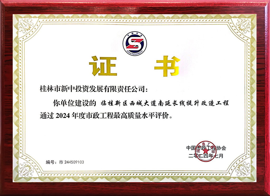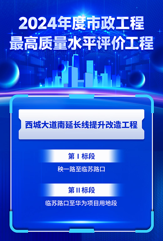 近日,中國市政工程協(xié)會公布了2024年度市政工程最高質量水平評價工程名單,新城投集團黨委黨建子品牌“黨旗映勝地 建設我先行”重要實踐地——西城大道南延長線提升改造工程(以下簡稱“西城大道南延長線工程”)榮登榜單。該獎項(即原國家市政工程金獎)是市政工程行業(yè)在工程質量方面最高質量水平評價,代表市政工程行業(yè)同時期國內頂尖水平,在行業(yè)內具有重要的示范引領作用。西城大道南延長線工程榮獲此殊榮,充分證明新城投集團在市政建設領域的實力。