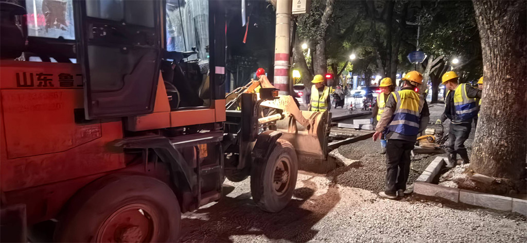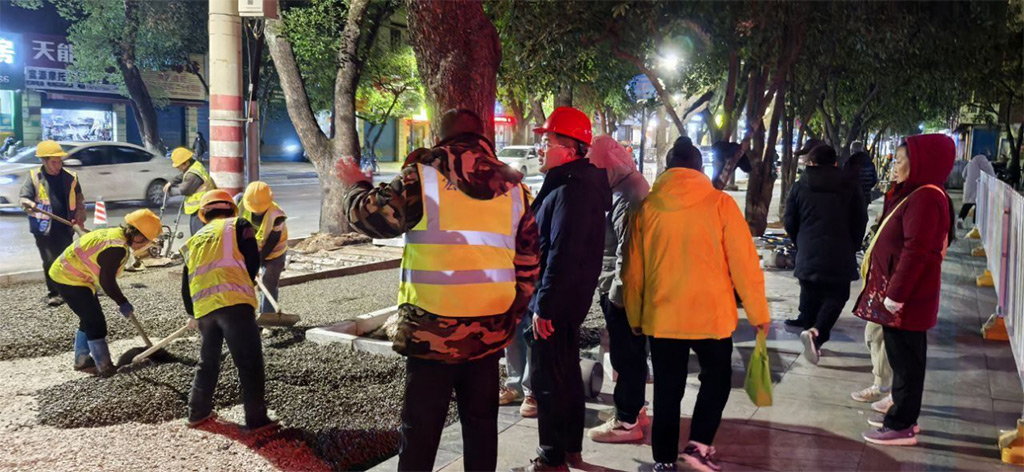 為確保蘆笛小學(xué)教學(xué)活動正常進(jìn)行,最大限度降低對周邊居民日常出行的影響,項(xiàng)目采取夜間和周末加班加點(diǎn)的工作方式,全體黨員干部職工發(fā)揚(yáng)“五加二、白加黑”的奮斗精神,爭分奪秒推進(jìn)工程進(jìn)度,成功在兩天內(nèi)超額完成蘆笛小學(xué)門口130多米人行道1300多平方米的透水混凝土改造任務(wù),彰顯了項(xiàng)目團(tuán)隊(duì)高效的施工能力和團(tuán)結(jié)協(xié)作的精神風(fēng)貌,充分展現(xiàn)了黨員的先鋒模范作用。