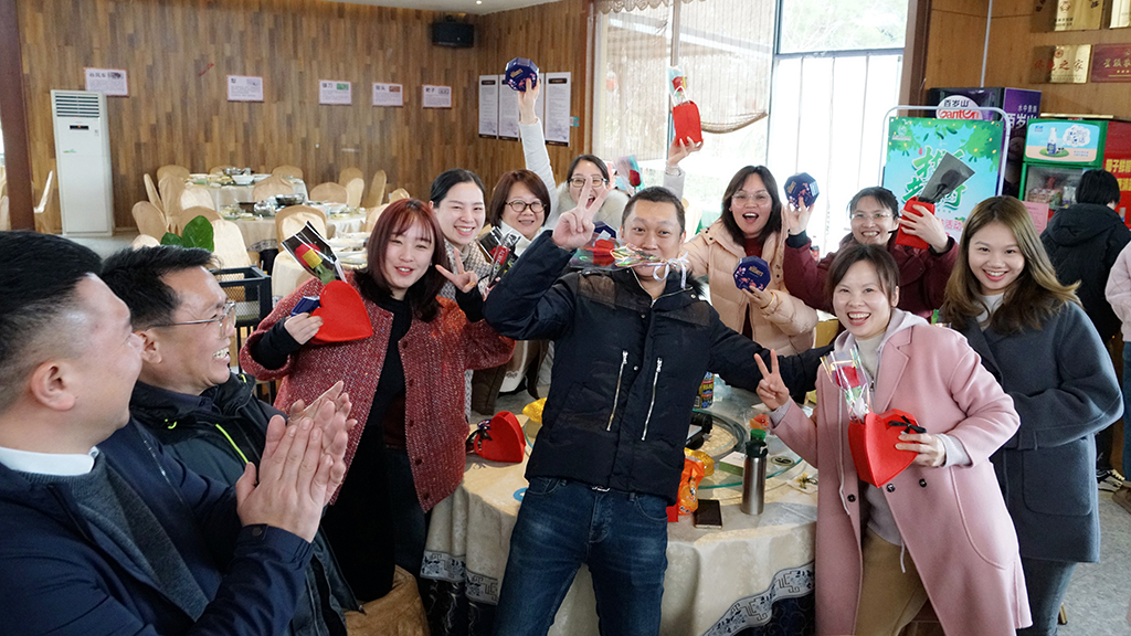 隨后的趣味游戲更顯活力?!隘偪駭?shù)鈔票”中,指尖飛舞化作疾風(fēng)驟雨;“你比劃我猜”時(shí),眉目傳情上演心有靈犀;“動(dòng)感搖一搖”里,肢體演繹隨樂律動(dòng)。全員合唱《鏗鏘玫瑰》時(shí),熒光隨節(jié)拍流轉(zhuǎn),笑靨伴音符飛揚(yáng),繪就了一幅“巾幗心向黨”的動(dòng)人畫卷。