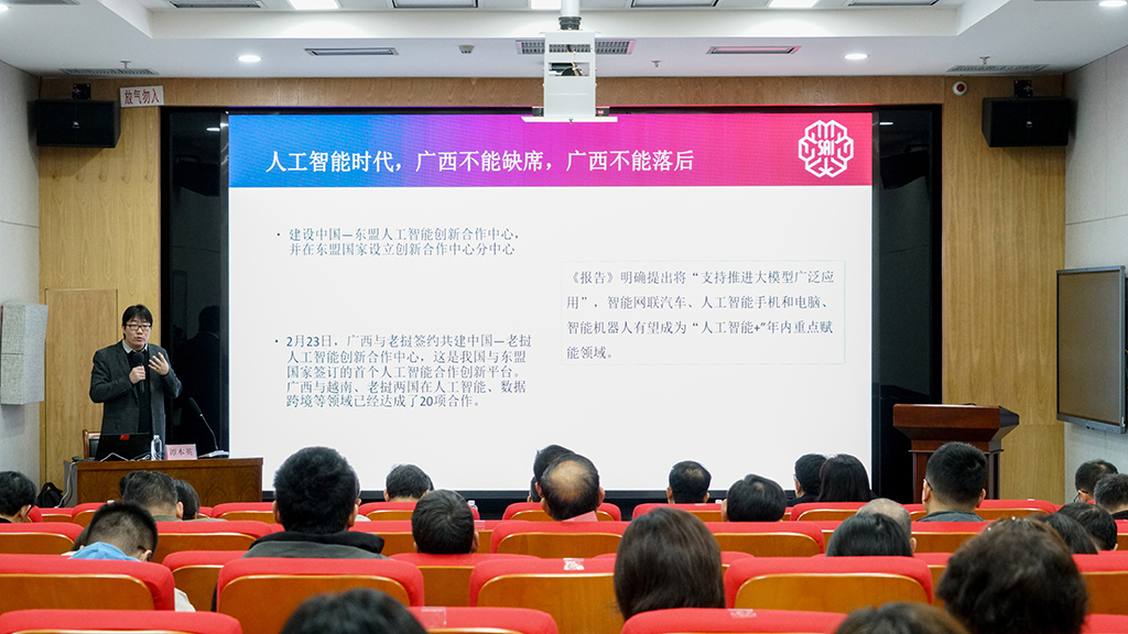為深入貫徹落實(shí)2025年全國兩會(huì)關(guān)于持續(xù)推進(jìn)“人工智能+”行動(dòng)方針,深刻領(lǐng)會(huì)習(xí)近平總書記關(guān)于人工智能的重要論述,積極響應(yīng)自治區(qū)黨委陳剛書記對(duì)廣西人工智能發(fā)展的重要“布局落子”,2025年3月14日,新城投集團(tuán)主動(dòng)擁抱人工智能,攜手廣西實(shí)體經(jīng)濟(jì)服務(wù)員工作隊(duì)駐桂林市工作隊(duì)(以下簡稱工作隊(duì))、市國資委,在桂林市黨群服務(wù)中心共同開展《人工智能+實(shí)體經(jīng)濟(jì)、國有企業(yè)轉(zhuǎn)型與高質(zhì)量發(fā)展》主題宣講會(huì)。