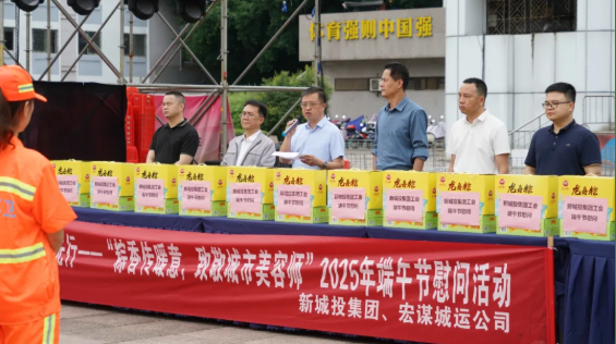 為深入踐行習(xí)近平總書記“以人民為中心”“勞動(dòng)最光榮”的指導(dǎo)思想,切實(shí)把組織關(guān)懷送到基層勞動(dòng)者心坎上,進(jìn)一步提升環(huán)衛(wèi)職工隊(duì)伍的職業(yè)認(rèn)同感和幸福感,2025年5月29日端午節(jié)前夕,新城投集團(tuán)聯(lián)合宏謀城運(yùn)公司在秀峰區(qū)中心廣場(chǎng)舉辦“粽香傳暖意,致敬城市美容師”端午節(jié)慰問活動(dòng)。此次活動(dòng)得到市城管委,秀峰區(qū)政府、城管局、環(huán)衛(wèi)站的大力支持與指導(dǎo)。市城管委黨組成員、副主任蔣毅出席活動(dòng)。受新城投集團(tuán)黨委書記、董事長朱毅委托,黨委副書記、紀(jì)委書記、工會(huì)主席譚力源代表集團(tuán)黨委、領(lǐng)導(dǎo)班子及全體職工,向奮戰(zhàn)在環(huán)衛(wèi)一線的干部職工致以節(jié)日問候。
