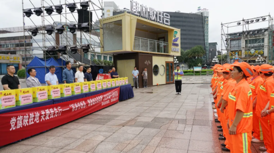 譚力源在講話中回顧了新城投集團(tuán)秀峰區(qū)環(huán)衛(wèi)項(xiàng)目的發(fā)展歷程。作為資產(chǎn)超300億元的綜合性國有企業(yè),集團(tuán)黨委始終堅(jiān)持黨建與業(yè)務(wù)深度融合、雙向促進(jìn),以“黨旗映勝地”黨建品牌為引領(lǐng),在城市建設(shè)主戰(zhàn)場(chǎng)、城市運(yùn)營第一線等領(lǐng)域交出亮眼答卷。他指出,自承接秀峰區(qū)環(huán)衛(wèi)項(xiàng)目以來,項(xiàng)目452名職工以“繡花功夫”守護(hù)城市顏值,在三屆桂林馬拉松賽事和三屆“三月三”民族歌圩薈活動(dòng)的環(huán)衛(wèi)保障、“6.19”特大洪澇災(zāi)害應(yīng)急清淤、漓江河“消劣返清”整治行動(dòng)等重大任務(wù)中沖鋒在前、勇挑重?fù)?dān)。這些成績的背后,凝聚著每一位環(huán)衛(wèi)職工的心血與汗水,是“勞動(dòng)最光榮”的生動(dòng)注腳。