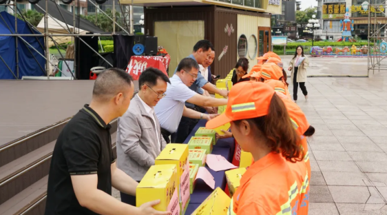 活動(dòng)現(xiàn)場(chǎng)氣氛熱烈而溫馨,與會(huì)領(lǐng)導(dǎo)向環(huán)衛(wèi)工人代表逐一送上端午慰問品。一份份承載著節(jié)日祝福的慰問品,既是對(duì)環(huán)衛(wèi)職工辛勤付出的真誠肯定,更是對(duì)“城市美容師”的崇高禮贊。接過禮包的環(huán)衛(wèi)工人們紛紛表示,將以更加飽滿的熱情投入工作,把城市打掃得更干凈、更美麗!