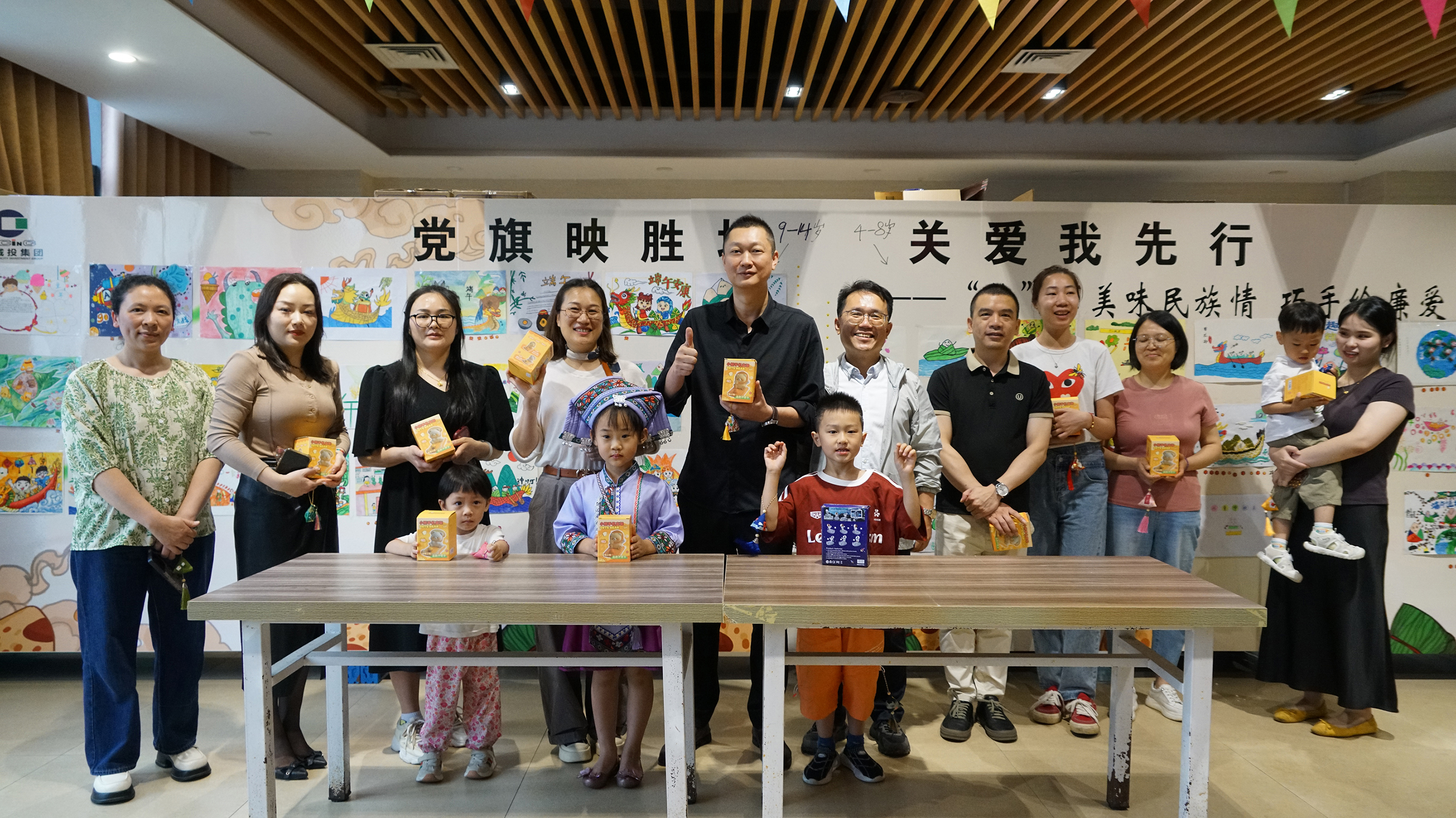 活動接近尾聲,小朋友們在“兒童節(jié)禮盒區(qū)”挑選盲盒禮品,驚喜連連。盲盒禮品中裝滿了各類童年回憶零食、民族文創(chuàng)產(chǎn)品等,每一份禮品都承載著集團對孩子們的關愛與祝福。孩子們的臉上洋溢著幸福的笑容,這份特別的節(jié)日禮物將成為他們成長中的美好回憶。